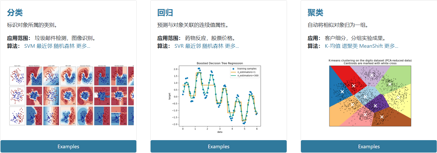 其中分类和回归是监督学习,聚类和降维是无监督学习