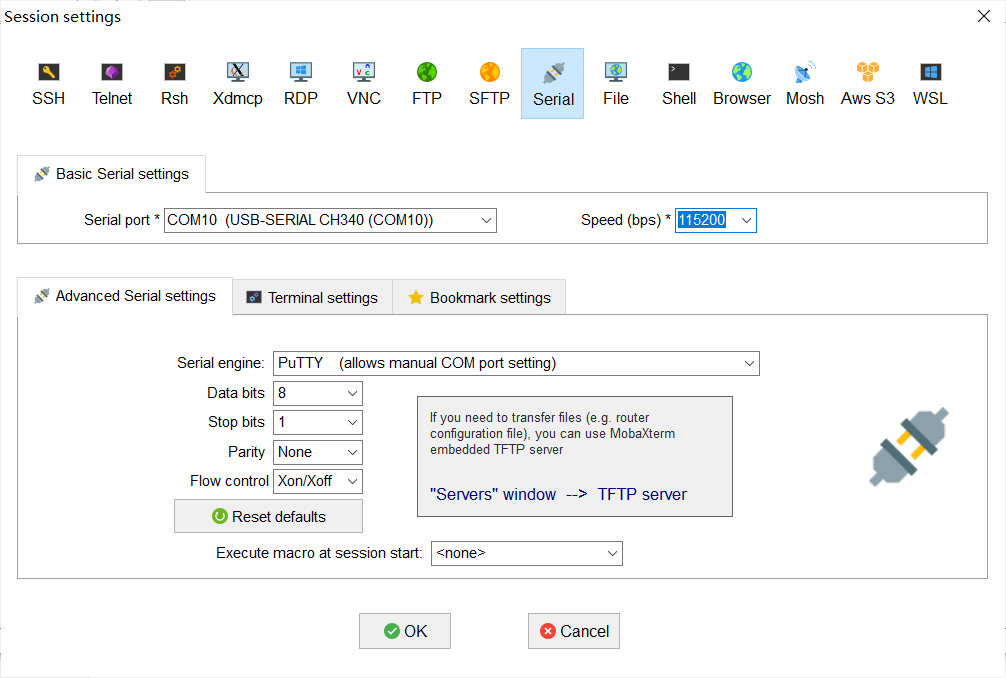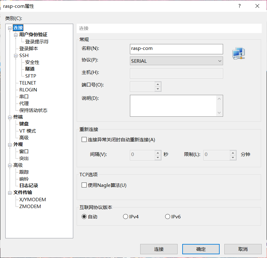 直接选择协议serial即可。